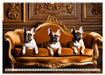 Französische Bulldoggen sind Charmeure mit lustigen Fledermausohren. Ihr Bewegungsdrang hält sich in Grenzen. Es gibt sie nahezu in allen Farben. Da sie über keine Unterwolle verfügen, lieben sie kuschelige Liegestellen. Gemütliche Sofas, Sessel und Betten werden gerne dazu genutzt. Mithilfe der KI habe ich die beliebte Hunderasse auf eleganten barocken Möbeln präsentiert und wünsche allen Bully-Freunden viel Freude damit.