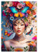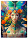 August: Fantasiefrau trägt bunten Blumenschmuck und Schmetterlinge