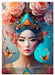 Januar: Blauäugige Fantasiefrau mit buntem Blumenschmuck und Schmetterlingen