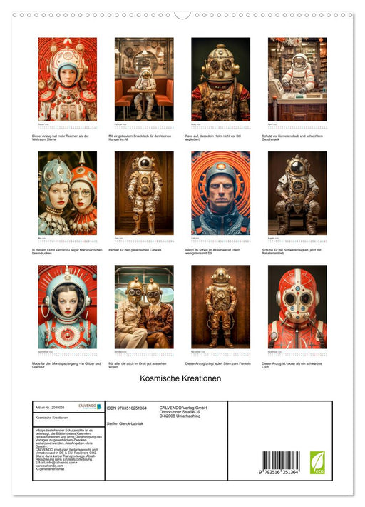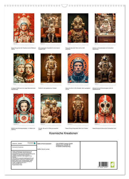 Dieser Kalender entführt Sie in die faszinierende Welt futuristischer Raumanzüge, wo Funktionalität auf skurriles Design trifft. (Monatskalender, ...