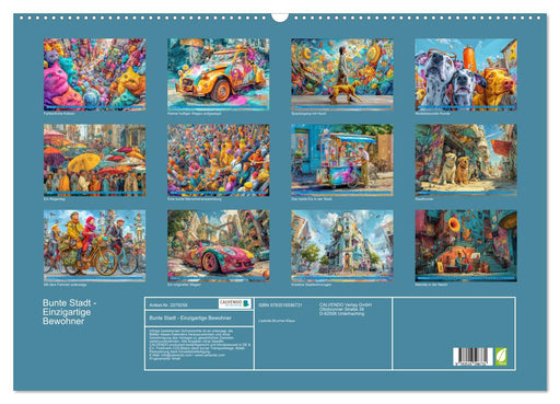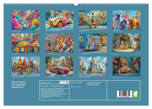 Bunt und humorvoll (Monatskalender, 14 Seiten) Tauche ein in eine farbenfrohe, lebendige Stadt voller einzigartiger Figuren, die mit viel Liebe zu...