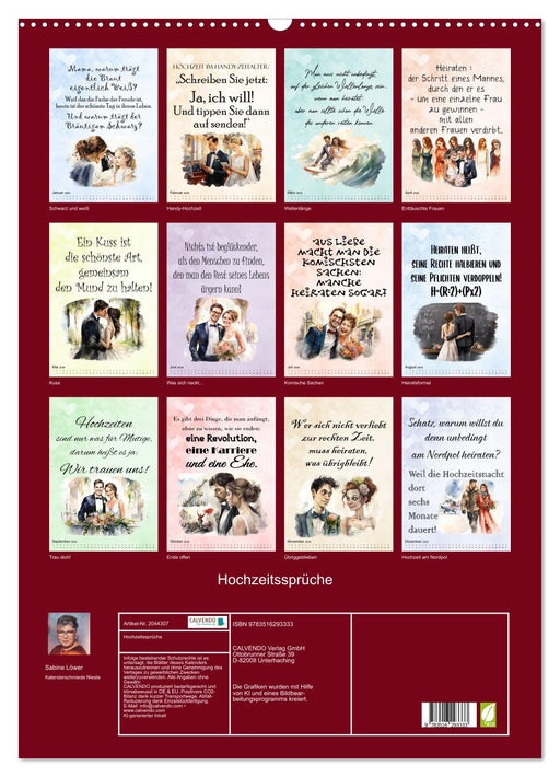 Afficher tous les détailsHochzeitssprüche (CALVENDO Premium Wandkalender 2026)