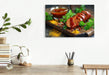 Premium Textil-Leinwand Currywurst mit Sauce und Gewürzen