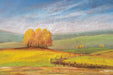 Weite Felder, sanfte Hügel, ein stiller Weg und warme Töne – dieses Pastellbild fängt die ganze Fülle des Herbstes ein. Die Landschaft strahlt Ruhe und Offenheit aus, die kleine Baumgruppe auf der linken Seite verankert das Bild, während der Weg den Blick in die Tiefe führt. Eine Einladung zum Innehalten und Weitergehen – mitten im goldenen Licht des Jahres.