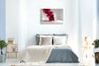 Premium Textil-Leinwand Roter Sessel im weißen Raum – Abstrakte Kunst in minimalistischem Stil