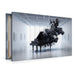 Premium Textil-Leinwand Schwarzes Piano in weißem Raum – Auflösung als moderne Kunst