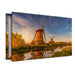 Premium Textil-Leinwand Windmühlen von Kinderdijk in der Abenddämmerung