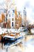 Amsterdam – eine Stadt voller Leben, Geschichte und Schönheit. Dieses malerische Bild fängt die unverwechselbare Atmosphäre der Grachtenstadt stimmungsvoll ein. Verträumte Wasserwege schlängeln sich zwischen historischen Giebelhäusern, während Boote sanft auf den Wellen schaukeln. Kleine Gassen laden zum Entdecken ein, während beeindruckende Bauwerke wie alte Kirchen und kunstvolle Denkmäler von einer reichen Vergangenheit erzählen. Amsterdam – eine Stadt, die in jedem Licht ihre ganz eigene Magie entfaltet.