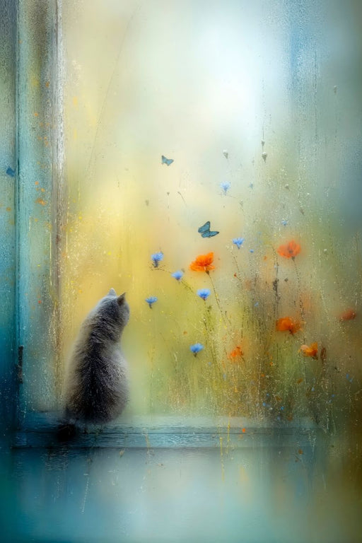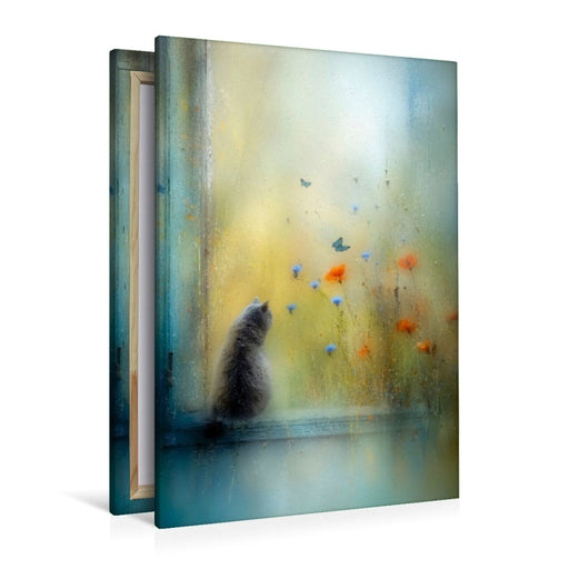 Afficher tous les détailsPremium Textil-Leinwand Die Katze auf der Fensterbank - kaum sichtbar, ganz da