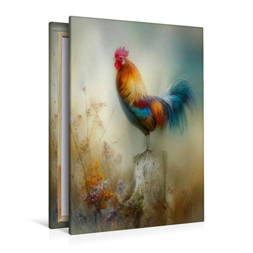 Afficher tous les détailsPremium Textil-Leinwand Der Hahn in prächtigen Farben - der Morgen lässt sich erahnen