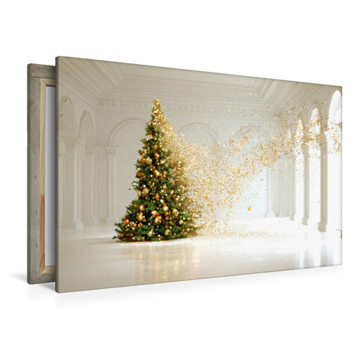 Afficher tous les détailsPremium Textil-Leinwand Weihnachtsbaum im weißen Raum – Minimalistische Kunst mit festlicher Eleganz