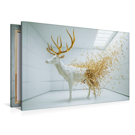 Afficher tous les détailsPremium Textil-Leinwand Goldener Elch im weißen Raum – Abstrakte Kunst in moderner Ästhetik