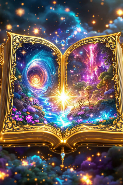 Ein antikes Buch mit schimmernden, fast lebendig wirkenden Seiten. Ein Buch, das sich wie ein Tor in fantastische Welten öffnet: leuchtende Farben...