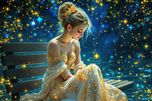 Verträumter Moment Dieses faszinierende Kunstwerk zeigt eine junge Frau mit melancholischem Blick, die in einem Moment stiller Kontemplation auf e...