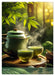 Die durch KI entstandenen Bilder verstärken beim betrachten das Gefühl von Ruhe und Gelassenheit, das mit dem Genuss von grünem Tee einhergeht.