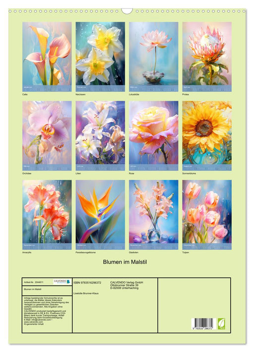 Afficher tous les détailsBlumen im Malstil (CALVENDO Premium Wandkalender 2026)