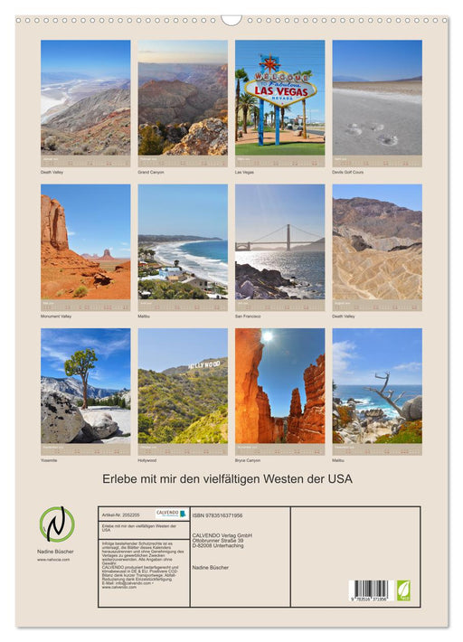 Afficher tous les détailsErlebe mit mir den vielfältigen Westen der USA (CALVENDO Wandkalender 2026)