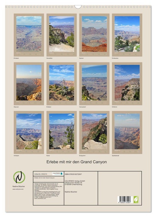Afficher tous les détailsErlebe mit mir den Grand Canyon (CALVENDO Wandkalender 2026)