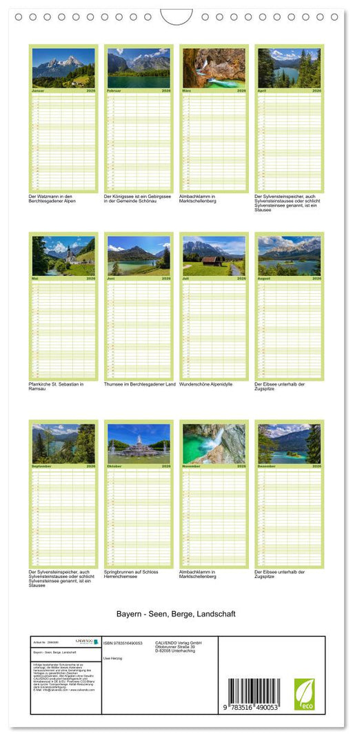 Afficher tous les détailsBayern - Seen, Berge, Landschaft (CALVENDO Familienplaner 2026)
