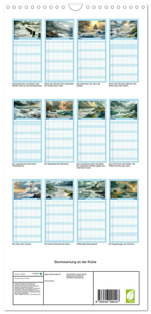 Afficher tous les détailsSturmwarnung an der Küste (CALVENDO Familienplaner 2026)