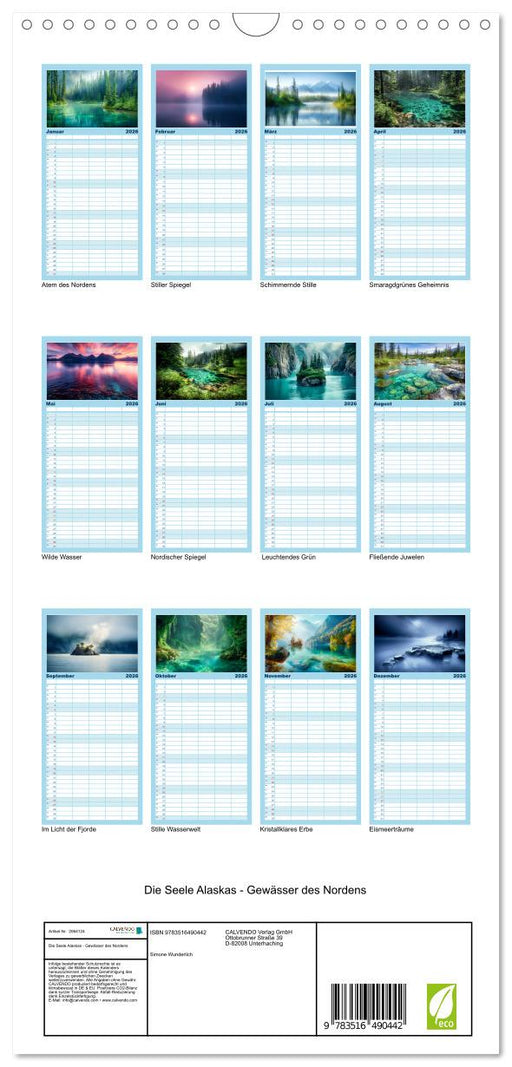 Afficher tous les détailsDie Seele Alaskas - Gewässer des Nordens (CALVENDO Familienplaner 2026)
