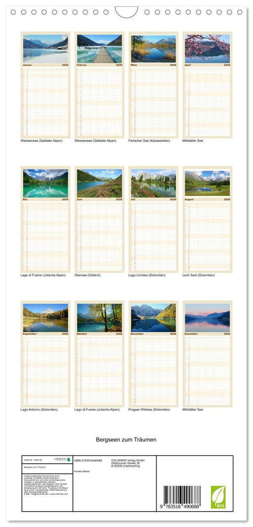 Afficher tous les détailsBergseen zum Träumen (CALVENDO Familienplaner 2026)