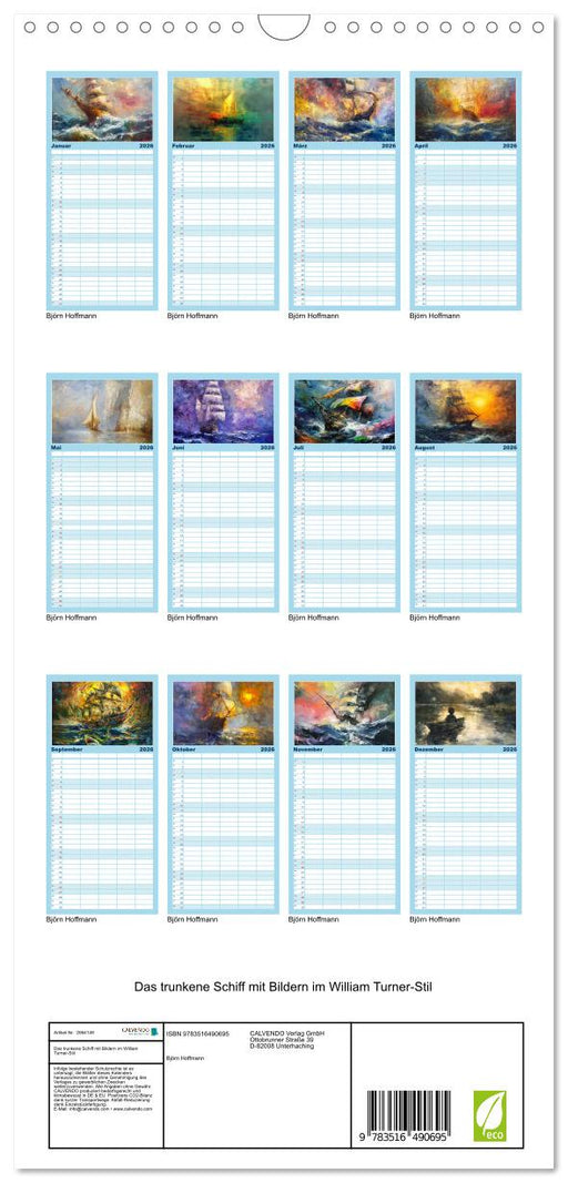 Afficher tous les détailsDas trunkene Schiff mit Bildern im William Turner-Stil (CALVENDO Familienplaner 2026)