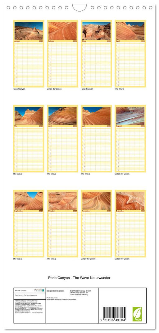 Afficher tous les détailsParia Canyon - The Wave Naturwunder (CALVENDO Familienplaner 2026)