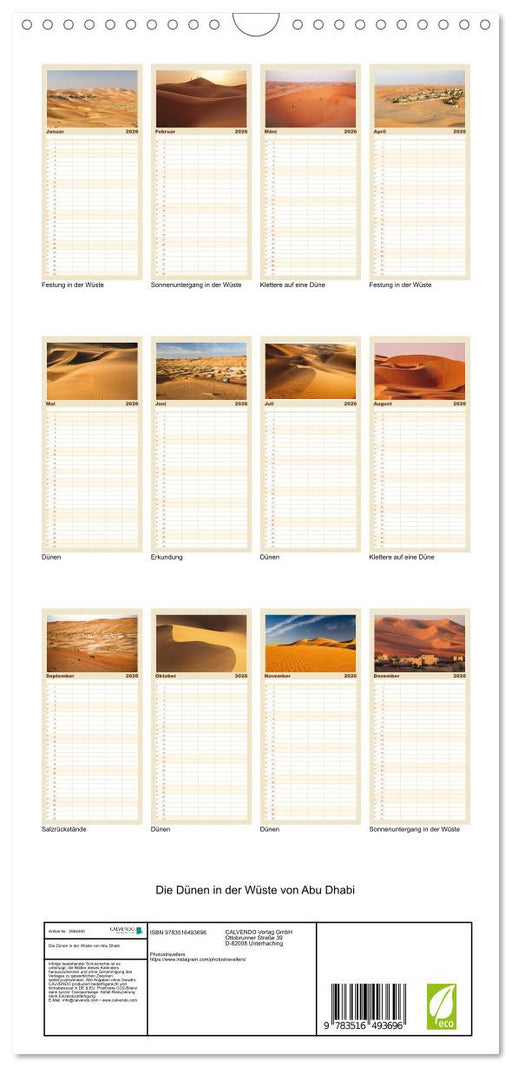 Afficher tous les détailsDie Dünen in der Wüste von Abu Dhabi (CALVENDO Familienplaner 2026)
