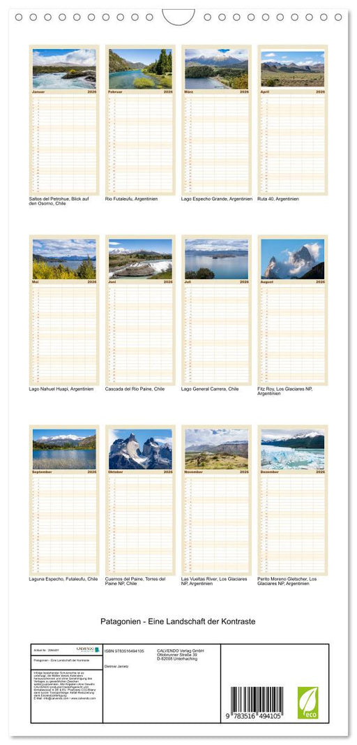 Afficher tous les détailsPatagonien - Eine Landschaft der Kontraste (CALVENDO Familienplaner 2026)
