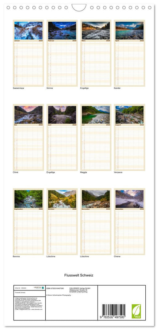 Afficher tous les détailsFlusswelt Schweiz (CALVENDO Familienplaner 2026)
