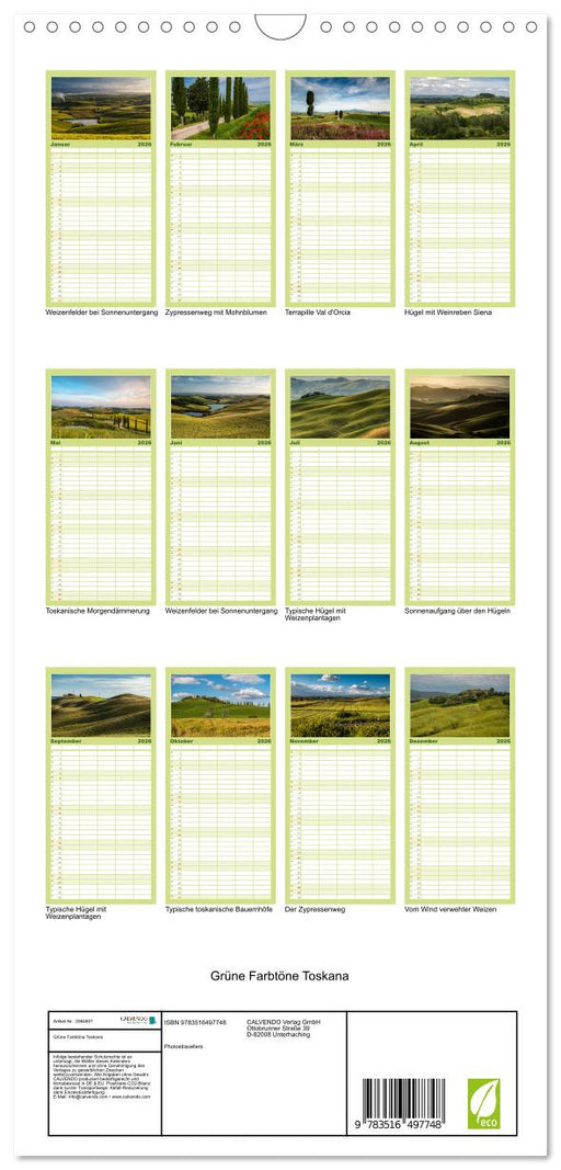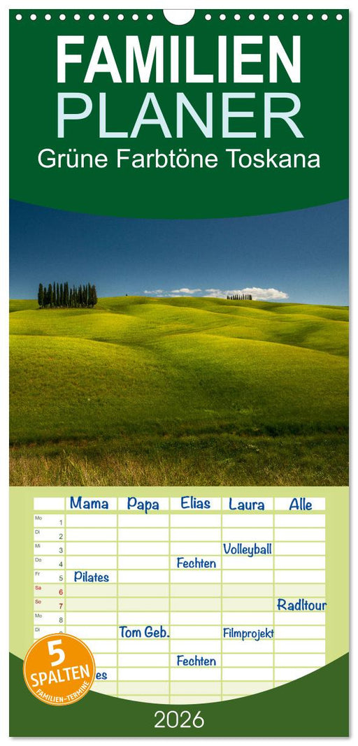 Grüne Farbtöne Toskana (CALVENDO Familienplaner 2026)