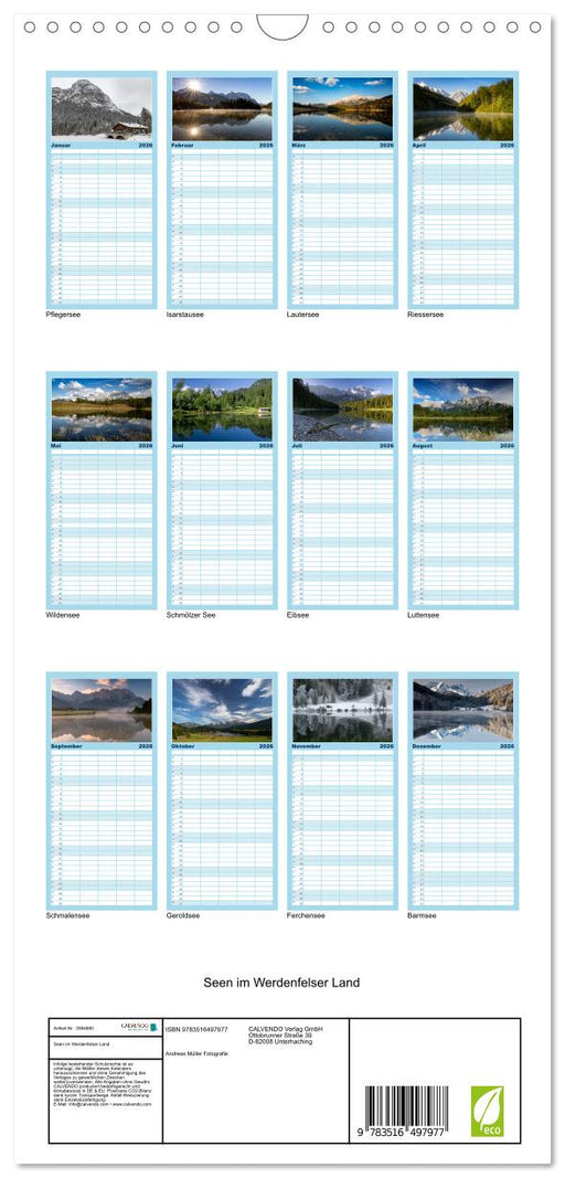 Afficher tous les détailsSeen im Werdenfelser Land (CALVENDO Familienplaner 2026)