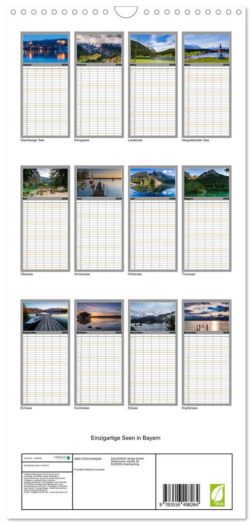 Afficher tous les détailsEinzigartige Seen in Bayern (CALVENDO Familienplaner 2026)