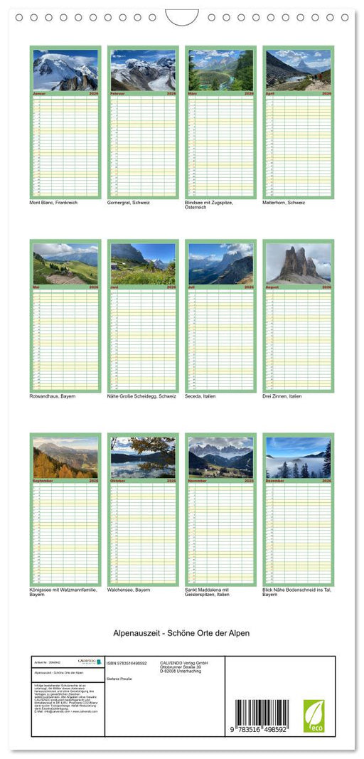 Afficher tous les détailsAlpenauszeit - Schöne Orte der Alpen (CALVENDO Familienplaner 2026)