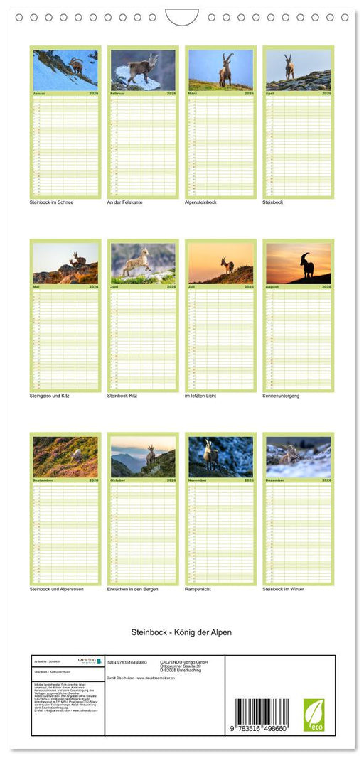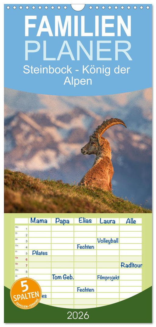 Afficher tous les détailsSteinbock - König der Alpen (CALVENDO Familienplaner 2026)