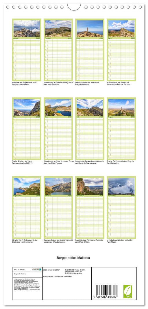 Afficher tous les détailsBergparadies Mallorca (CALVENDO Familienplaner 2026)