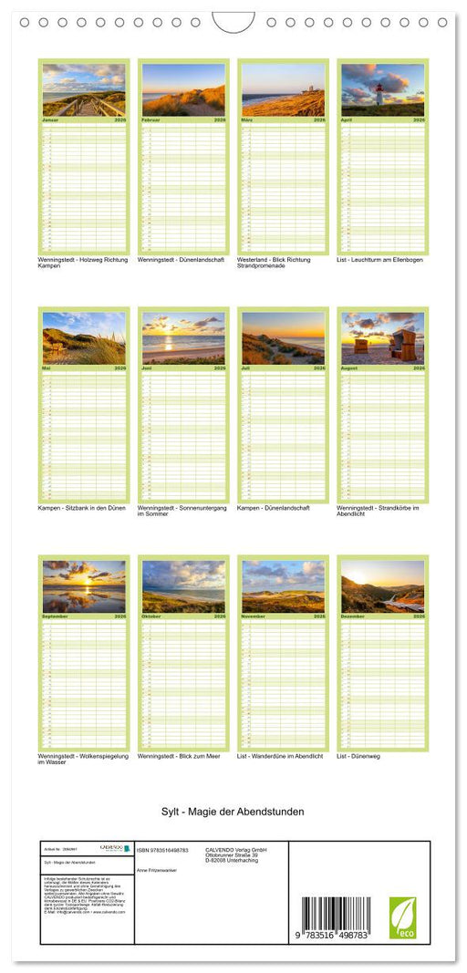 Afficher tous les détailsSylt - Magie der Abendstunden (CALVENDO Familienplaner 2026)