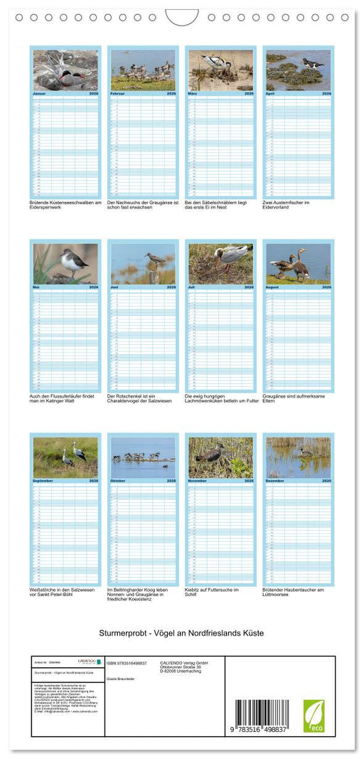 Afficher tous les détailsSturmerprobt - Vögel an Nordfrieslands Küste (CALVENDO Familienplaner 2026)