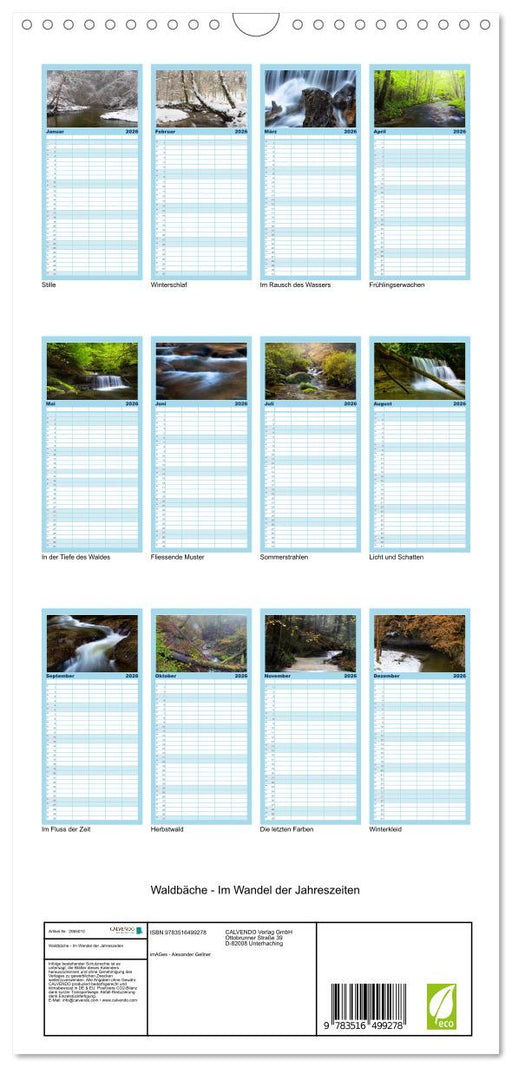Afficher tous les détailsWaldbäche - Im Wandel der Jahreszeiten (CALVENDO Familienplaner 2026)