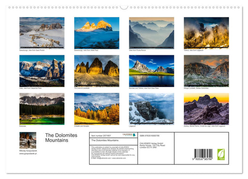 Afficher tous les détailsThe Dolomites Mountains (CALVENDO Premium-Calendar 2026)