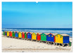 Juli: Bunte Strandhäuschen am langen Strand von Muizenberg, ein an der False Bay gelegener Vorort von Kapstadt, Westkap, Südafrika
