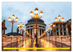 April: Abendlicher Blick auf der "Brücke der Kunst" in Skopje