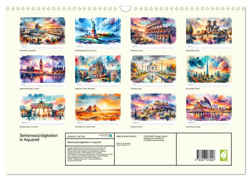Afficher tous les détailsSehenswürdigkeiten in Aquarell (CALVENDO Wandkalender 2026)