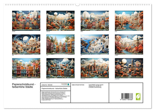 Afficher tous les détailsPapierschicktkunst - farbenfohe Städte (CALVENDO Wandkalender 2026)