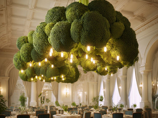 Täuschend echte Gemüsewelten als Architektur Die verzweigte Struktur des Brokkolis wird zur üppigen Lichtinstallation in einem eleganten Raum. Fei...