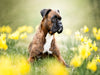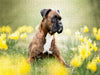 Ein sonniger Frühlingstag, eine Wiese voller Narzissen – und mittendrin Käthe, die sich mit sanftem Blick im Glück des Augenblicks verliert. Dieses Bild verbreitet Hoffnung, Lebensfreude und die unverkennbare Eleganz eines Boxerhundes.