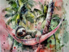 Dieses KI-generiertes Aquarellbild mit dem unwiderstehlichen Charme gemütlicher Faultiere ist nicht nur dekorativ ist, sondern erinnert dich auch jeden Tag daran, das Leben ein bisschen gemütlicher anzugehen. Ideal zum Verschenken – oder zum Selbst-genießen!