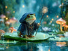 Ein kleiner Frosch in einer geheimnisvollen Zauberrobe steht auf einem Seerosenblatt - sein Zauberstab leuchtet, während magische Funken durch den Wald tanzen. Dieses liebevoll mit KI generierte Motiv entführt Kinder in eine verspielte Fantasiewelt voller Magie, Natur und Abenteuer. Ideal als Kinderpuzzle oder märchenhaftes Geschenk bringt das Bild Zauber und Freude in jedes Kinderzimmer. Die detailreiche Szene mit Pilzen, Lichtpunkten und dem mutigen Zauberfrosch lädt zum Träumen, Staunen und Puzzeln ein - ein zauberhaftes Highlight für kleine Entdeckerinnen und Entdecker.