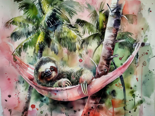 Ein Motiv aus dem Kalender „Faultiere, ein Leben in Zeitlupe“ von Sabine Löwer Dieses KI-generiertes Aquarellbild mit dem unwiderstehlichen Charme...